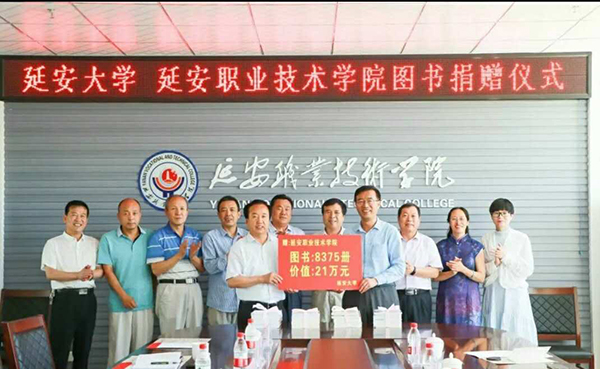捐赠仪式上,武忠远副校长指出:这次所捐图书都与延安职业技术学院所设学科相关,质量较高,到该校能“书尽其用”。此外,两校承担着陕北地区立德育人的责任,应以此为契机,在办学的硬件配置、图书资料、优秀师资、通识教育、科研等方面加强交流,资源共享。