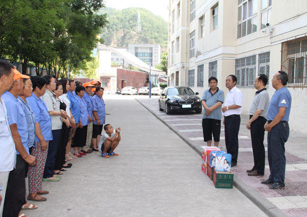 每到一个地方,王顺副书记及工会干部都将清凉饮料和防暑物品送到大家手上。