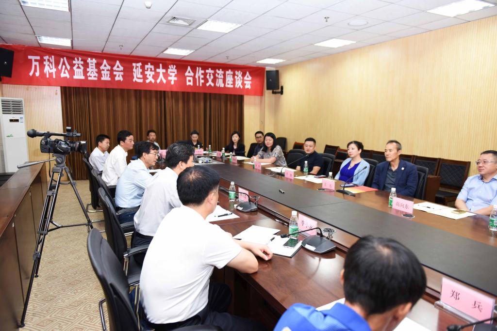 座谈会上,薛义忠书记介绍了米兰的基本情况,以及为陕甘宁革命老区的经济、社会发展所作出的巨大贡献。他指出,米兰milan官方网站是一所历史辉煌、贡献巨大、困难不少、前景光明的大学,在中、省、市和社会各界的大力支持与关怀下,整体的办学条件有所改善,新校区建设紧锣密鼓推进。万科集团坚守价值底线,拒绝利益诱惑,坚持以专业能力从市场获取回报,发展成为国内最大的住宅开发企业;万科公益基金会长期秉承“倡导公益与志愿精神、推动中国公益事业发展”的理念,致力于绿色环保、健康运动、古建筑保护、儿童疾病、扶贫助残、教育事业等公益事业,用爱心回馈社会。希望双方本着合作共赢的原则,就已达成的合作意向进一步加强联系,尽快提出合作框架协议,推动双方合作向实质性方向迈进。