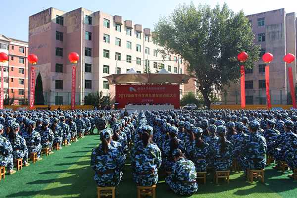 创新学院理工系主任闫文耀代表教师对2017级新同学表示欢迎并提出希望。护理学院护理1701班白如雪代表2017级参训学生表示将圆满完成军训任务。