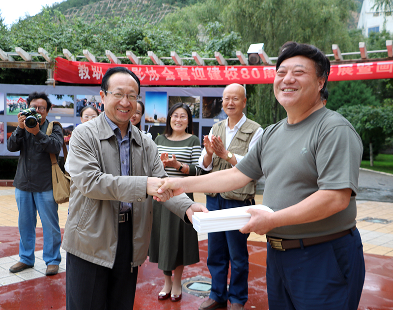 随后,白泽生主席向袁广斌主席赠送了《旧貌换新颜》画册,并与摄影协会会员们一起观看了展览。