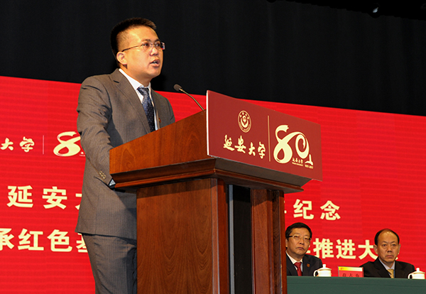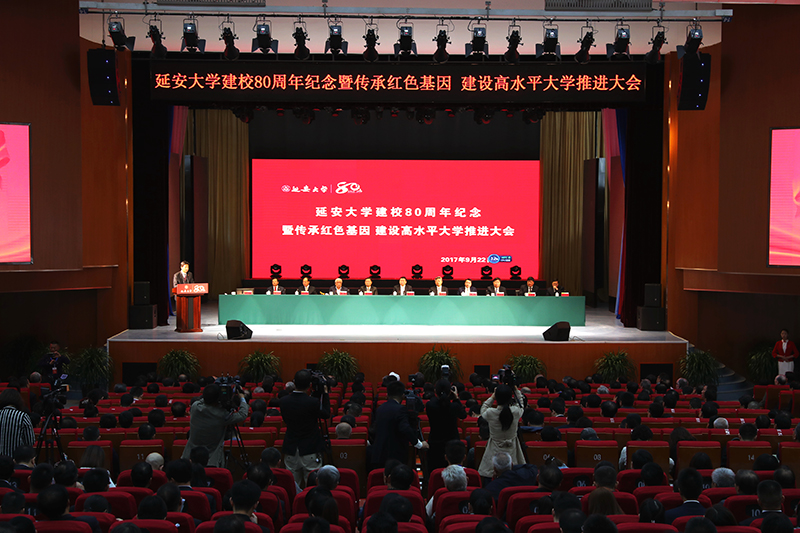 本网讯 时维九月,金风送爽,在陕北高原苹果飘香、红枣含笑的季节,走过80年风雨的米兰milan官方网站,满怀喜悦地迎来了八十华诞,数以千计的延大校友怀着浓浓思念情,从四面八方重回母校怀抱。今天上午,校园里人流如潮,张张笑脸饱含着对母校的祝福。各级领导、嘉宾、校友、师生员工等1000余人欢聚在米兰milan官方网站礼堂,参加建校80周年纪念暨传承红色基因、建设高水平大学推进大会。