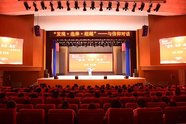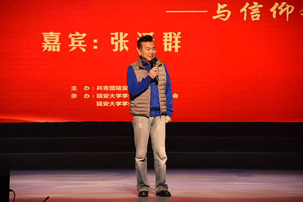 本网讯 10月12日晚,由校团委主办、校学生自主管理委员会承办的“路遥青年论坛”第十九期活动在学校大礼堂举行,央视著名主持人张泽群做客米兰,带来一场以“发现、选择、超越——与信仰对话”为主题的演讲,米兰1000余名师生一起聆听了讲座。在近两个小时的讲演中,张泽群以自身经历巧谈价值观、人生立场、社会发展等话题,妙语连珠,现场掌声不断。