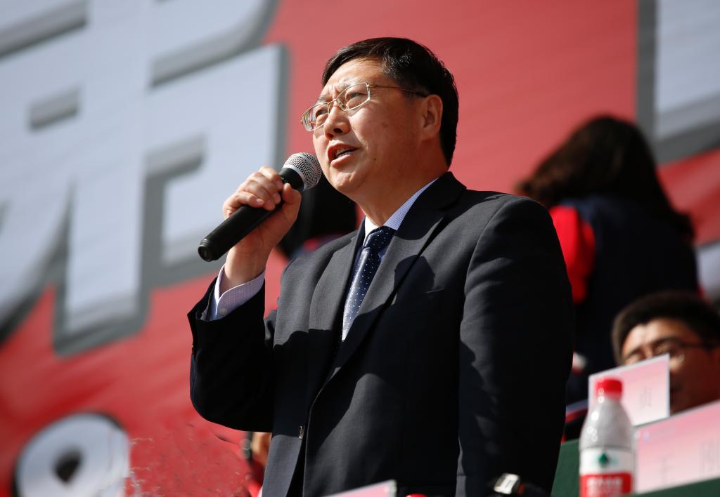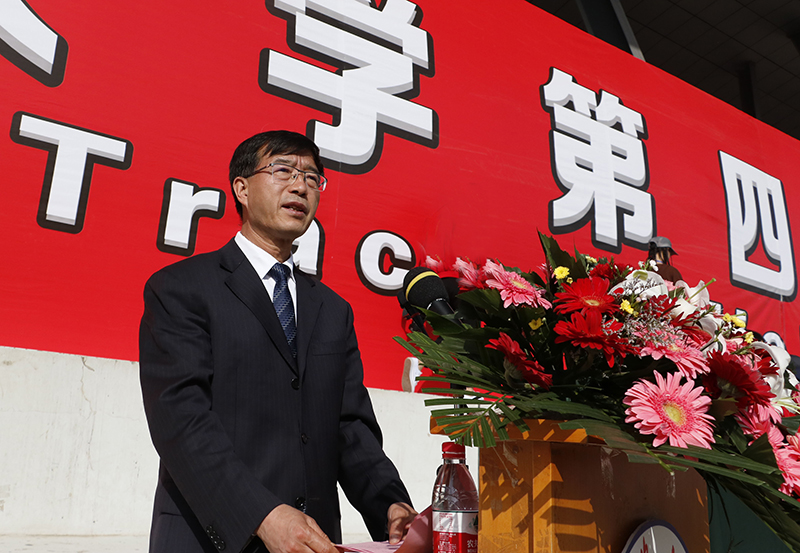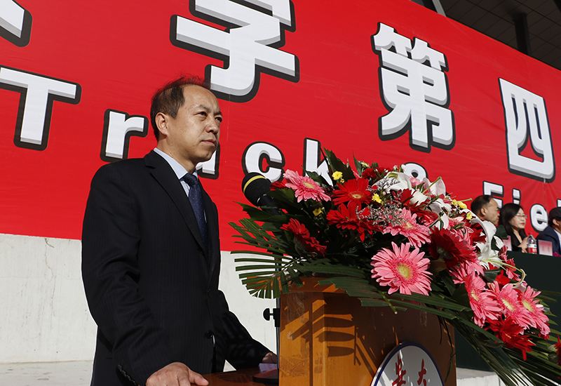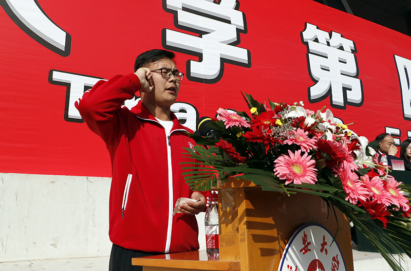 张金锁校长宣布第四十二届运动会比赛开始(杨醒思 摄)