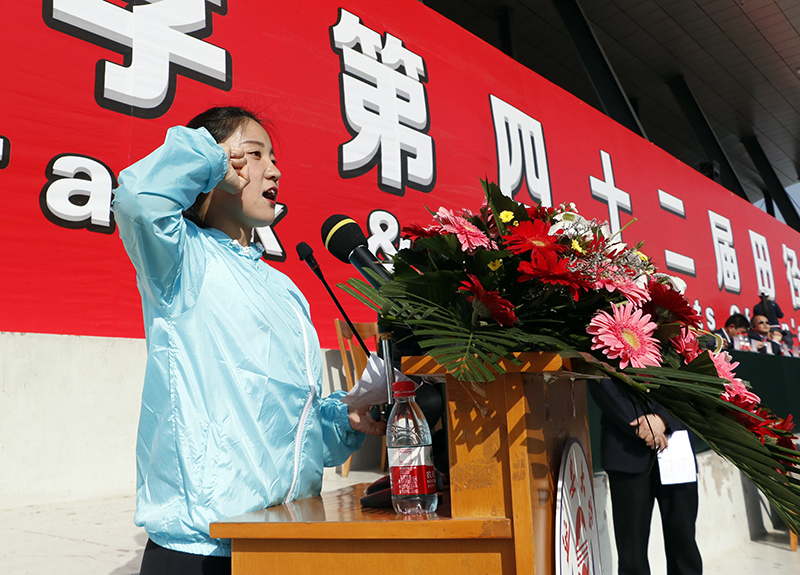 开幕式上,体育学院李婷和化工学院杨明辉分别作为裁判员代表和运动员代表宣了誓。