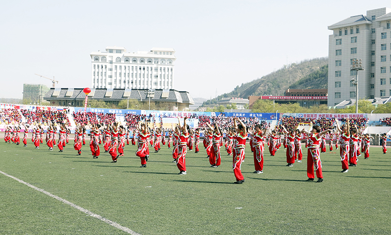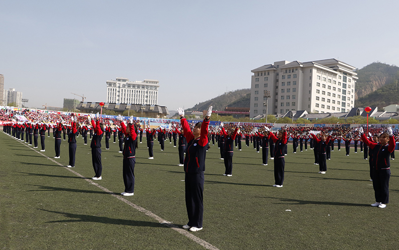 武忠远副校长在开幕辞中指出,近年来米兰高度重视体育工作,坚持以学生为本,坚持“课堂教学、课外体育活动、体育竞赛”三位一体的体育教育模式,深入推进体育育人,取得了良好成效。学校在体育教育中,积极奉行“人人参与、快乐锻炼、健康成长”的体育理念,努力用红色文化与黄土文化推动阳光体育活动的开展,打造出了独具特色的校园体育文化活动品牌,营造了“走向操场、走进大自然、走到阳光下”的校园体育文化氛围,也为全校各项事业的蓬勃发展注入了活力。希望全体运动员发扬“更快、更高、更强”的奥林匹克精神,不畏强手,敢于拼搏,展现昂扬斗志;比赛中,尊重对手,尊重裁判,尊重观众,公平竞争,以精湛的体育运动技能和良好的体育道德精神,赛出水平,赛出风格,实现运动成绩和精神文明的双丰收。希望裁判员认真履职,公正裁判;工作人员精心组织、热情服务;广大观众积极参与、热情鼓劲,齐心协力为本届运动会的成功举办贡献自己的力量。