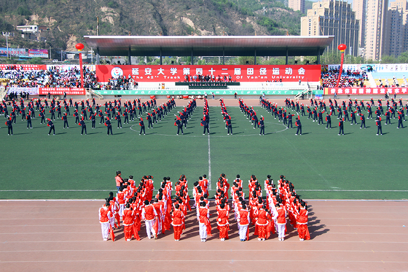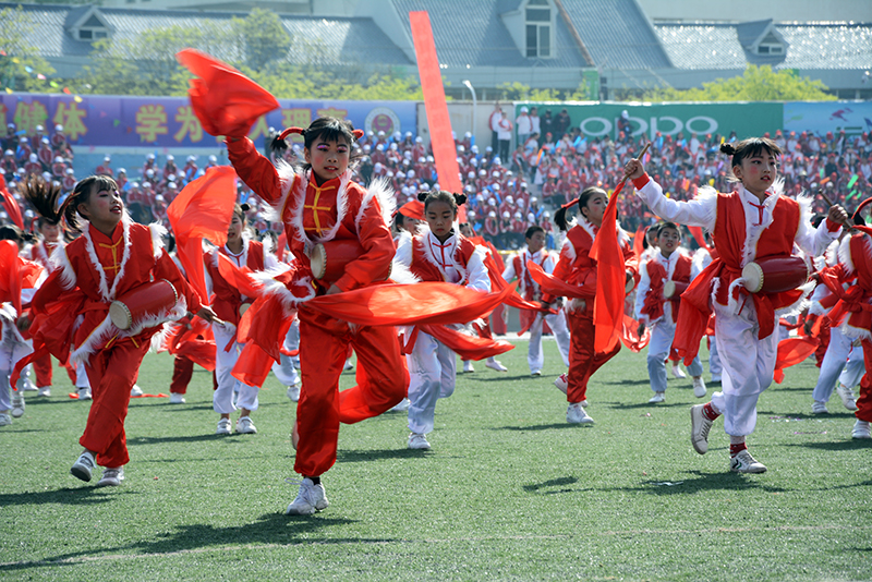 文体表演结束后,张金锁校长宣布第四十二届运动会比赛开始。