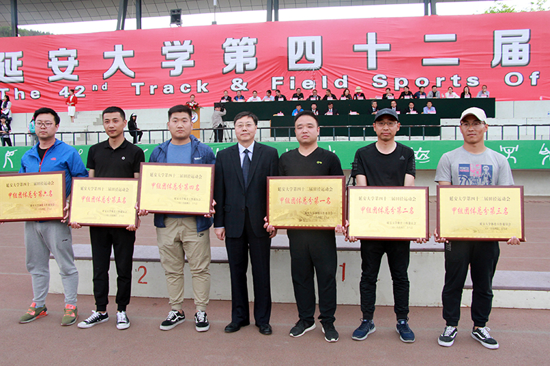 闭幕式上,张金锁校长为获得甲组团体总分第一至第六名的代表队颁了奖,纪委书记苏醒仁为获得乙组团体第一至第三名的代表队颁了奖,副校长王刚为获得体育道德风尚奖的单位颁了奖。