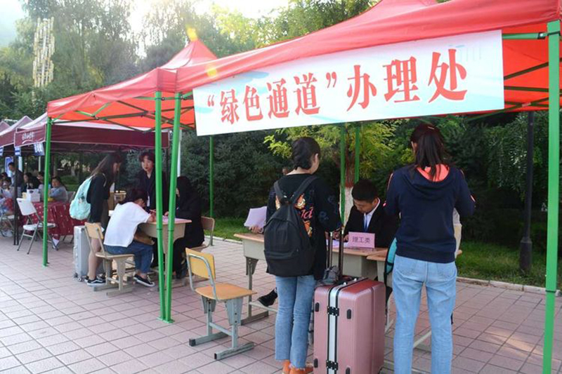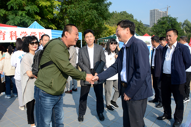 校领导视察杨家岭校区迎新服务点并与新生家长交流
