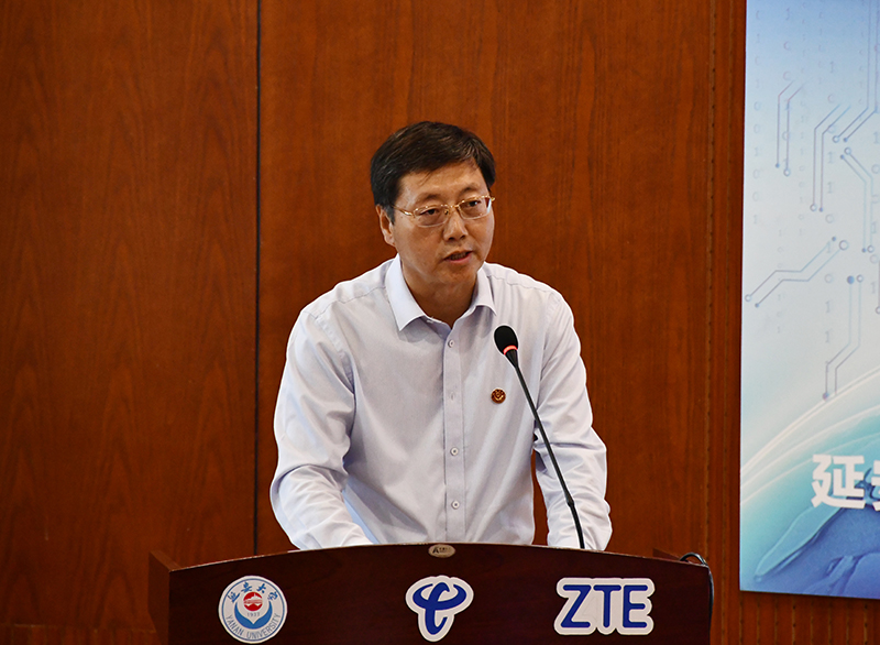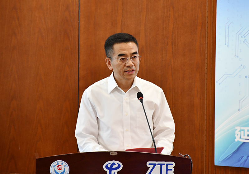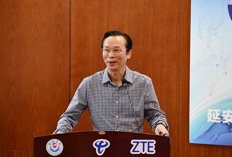 中兴通讯公司副总裁宋文中在启动仪式上讲话,表示今天的5G+智慧校园启动仪式是一个新的里程碑,希望校企三方发挥各自优势,共同探索5G技术在教育行业和大学校园的应用,一同携手打造全国的红色教育标杆,谱写5G时代产、学、研三方合作共赢的新篇章。