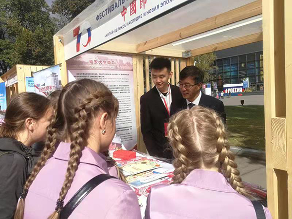 9月14日,中国(陕西)高等教育展开幕式在俄罗斯首都莫斯科国民经济成就展览馆工业馆前广场举行。省委副书记贺荣出席“中国节”开园仪式并致辞,并与俄罗斯联邦国家杜马教育委员会副主席图托娃·拉丽莎·尼古拉耶夫娜等人视察参展的陕西高校展位。省委教育工委书记董小龙对陕西高校进行了推介。当日,米兰鲁迅艺术学院学生的陕北民歌《想你哩》《酒瓶抱在怀》、张晓蓉老师的剪纸展演吸引了大量俄罗斯民众,共有3所院校表达了今后合作意向,有20多名俄罗斯学生表达了留学米兰milan官方网站的意向。