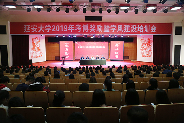 王刚副校长在讲话中指出,当前,学校正在抓紧内涵建设,朝着更有特色、更有水平大学迈进,第一次召开考博奖励和研究生知识信仰教育会议,既是对优秀师生的表彰,又是全校狠抓研究生学风建设动员会,更是持续加强学科建设、冲击博士点和迎接第五轮学科评估的一次观念和方法的集中培训。各院系应围绕学校高质量发展和内涵建设的总体目标,切实加强研究生培养质量提升的核心工作;各研究生培养单位和导师应坚持目标管理与过程管理并重,不断强化师德师风建设和研究生日常管理,营造更加浓厚的学术氛围;每位延大学子应秉持“信念坚定、求真务实、敢于担当、乐于奉献、善于创新”的延大精神特质,以崇高的理想信念和不懈的学术追求开辟延大学术文化的新境界。