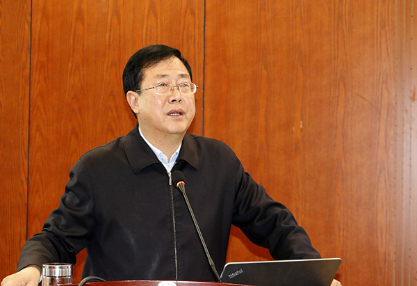 本网讯 按照“不忘初心、牢记使命”主题教育要求,10月31日下午,校党委副书记田伏虎同志在行政楼一楼报告厅讲党课。机关党委第四党支部(学工部、团委、泽东干部学院三个单位组成)全体党员,所分管的党政办、宣传部、保卫处等部门所属党员,所联系的数学与计算机学院、马克思主义学院部分师生党员以及各院系副书记、辅导员聆听党课。