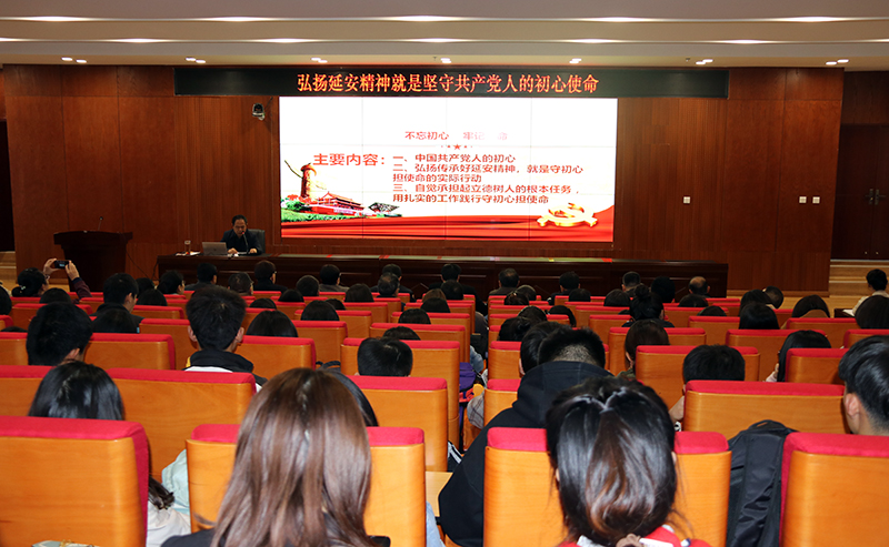 本网讯 11月6日下午,党委副书记王顺在新校区行政楼1楼会议室为外国语学院和石油学院两个联系学院师生党员、所在机关党委第二党支部党员、分管部门党员干部近200人,讲了题为《弘扬延安精神就是坚守共产党人的初心使命》的专题党课。