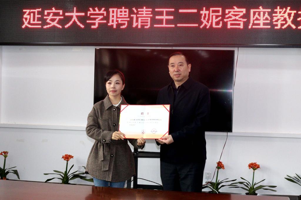 随后,高子伟宣读了相关聘任文件,并向王二妮颁发了客座教授聘任证书。