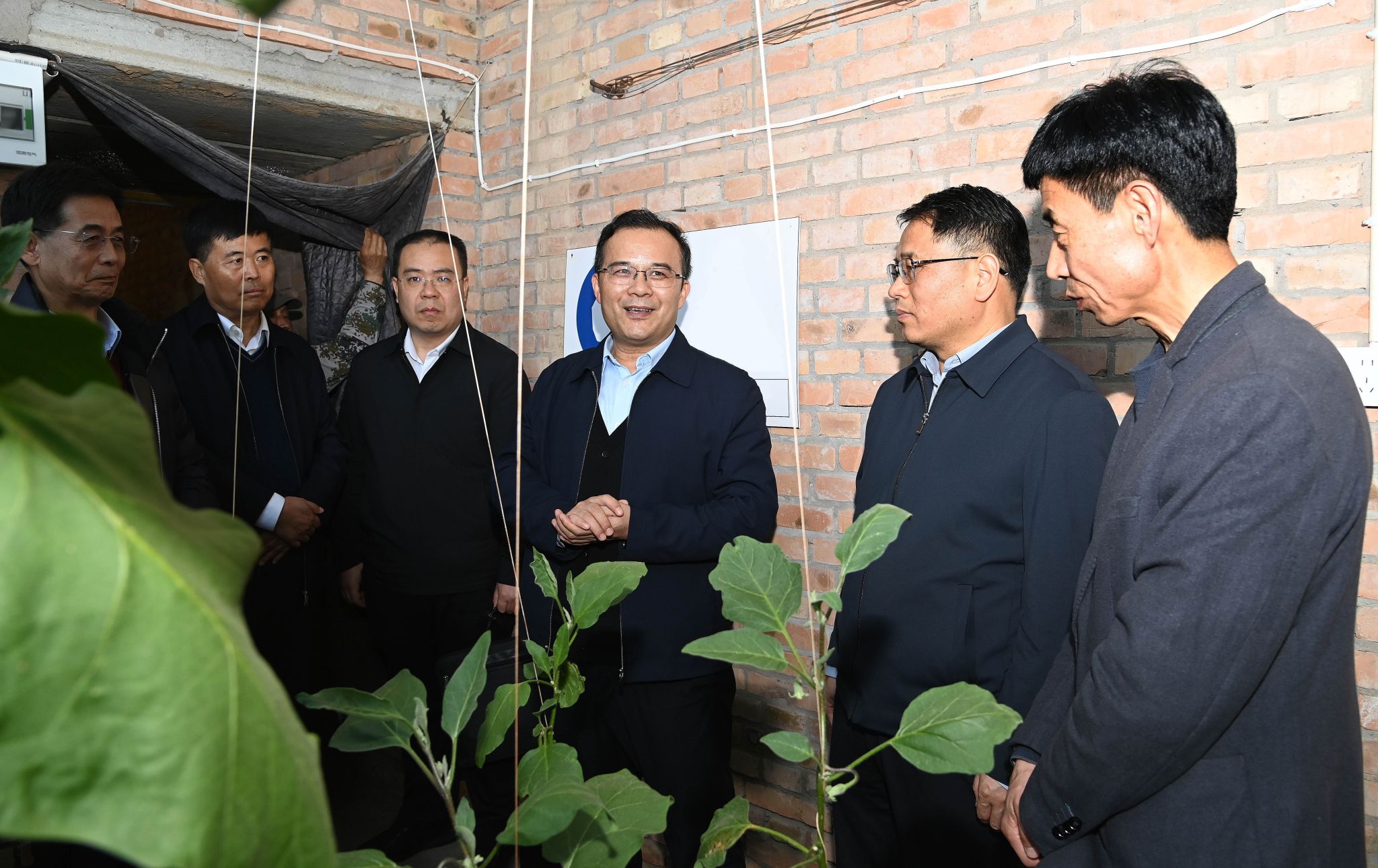 奚家米一行首先调研了智慧化管理平台建设的进展情况,现场听取了项目负责人关于建设内容、核心功能和转化前景等方面的详细汇报,并深入大棚进行实地考察,详细视察作物种植情况和技术应用现状。奚家米对团队前期的科研工作成果给予充分肯定,并强调此项目的开展不能仅局限于科研层面,还要站在市场化、产品化的角度,形成一整套供应链体系,推动科研成果的市场化应用。他指出,要进一步优化产业链布局,促进农业科技与市场需求的紧密结合,并在未来将技术推广至苹果种植等特色产业领域,拓展更广泛的应用场景。