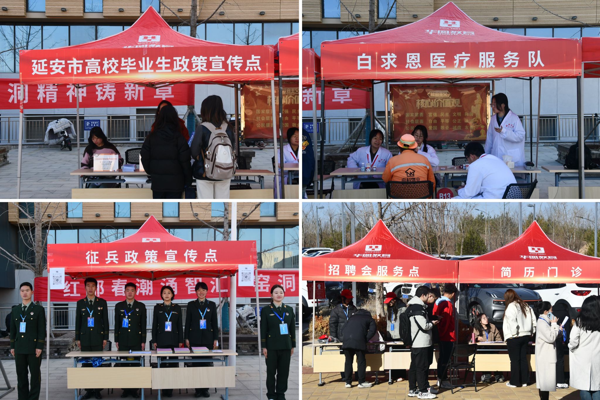 延安市人社局对本次招聘会给予了大力支持,市人才交流中心副主任白玉带领工作人员到会指导工作,宣传延安市促就业政策,现场咨询的毕业生持续不断。各学院院长、书记、带领全体学工干部积极服务用人单位,推荐毕业生,现场指导学生积极就业。整个会场人流涌动,气氛热烈。