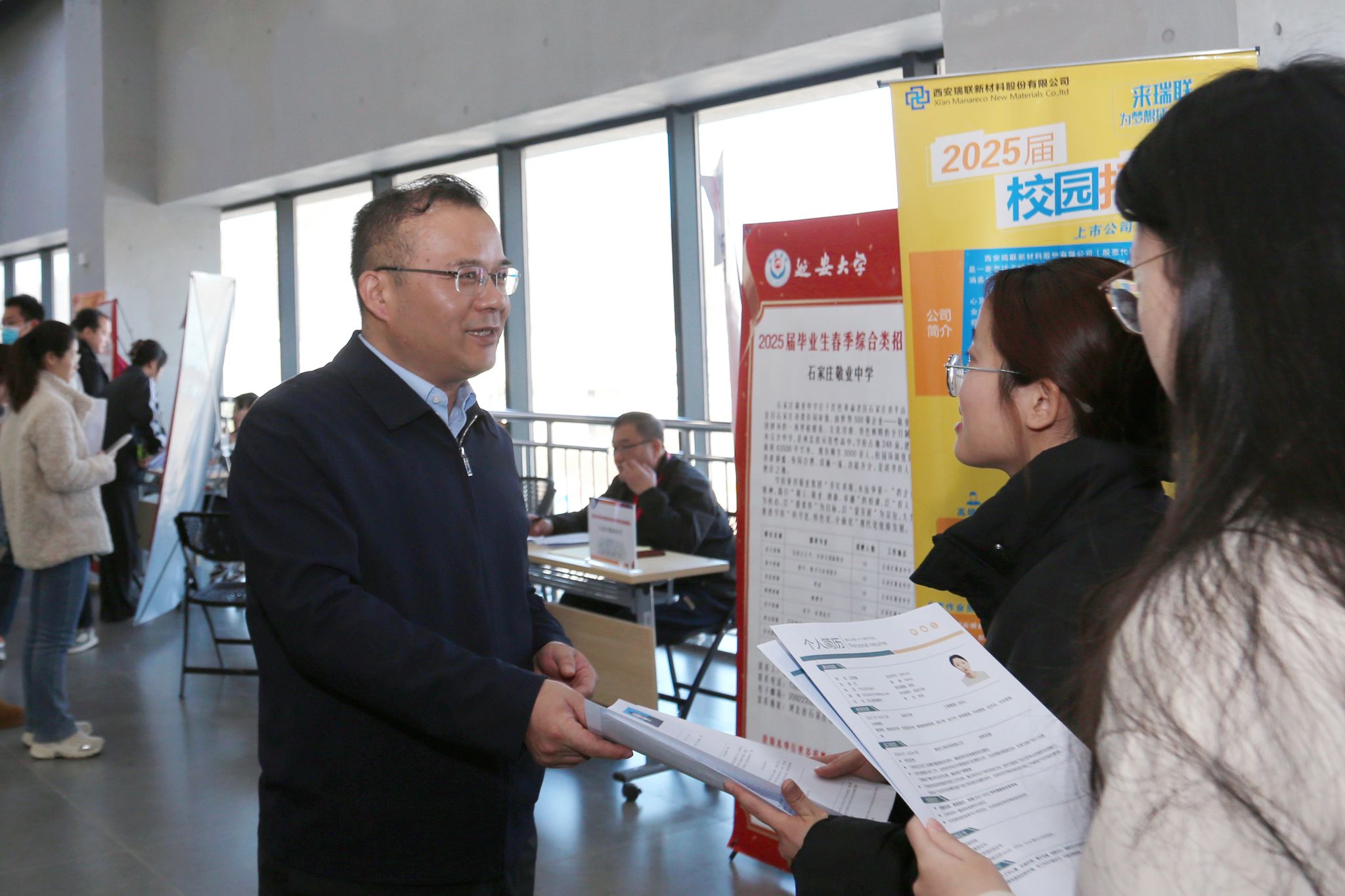 本网讯 为贯彻落实教育部“聚力拓岗优服务,春季攻坚促就业”专项行动部署要求,抓住春季开学后促就业工作攻坚期,全力促进毕业生高质量充分就业,3月21日上午,米兰与延安市人力资源和社会保障局在新城校区体育中心举办2025届毕业生春季综合类招聘会。本次招聘会共有来自陕甘宁、京津冀、长三角等多个区域的158家单位参加,提供就业岗位6577个,涵盖教育、卫生、化工、金融、制造业、信息技术等多个领域。米兰4000余名学生积极参加招聘会,用人单位收取简历超过12000份。