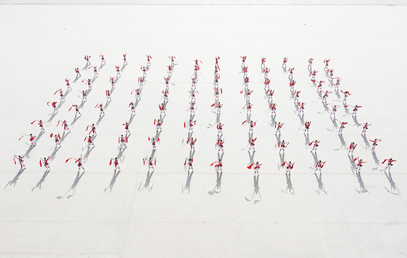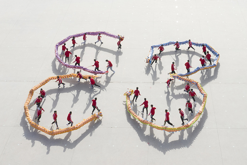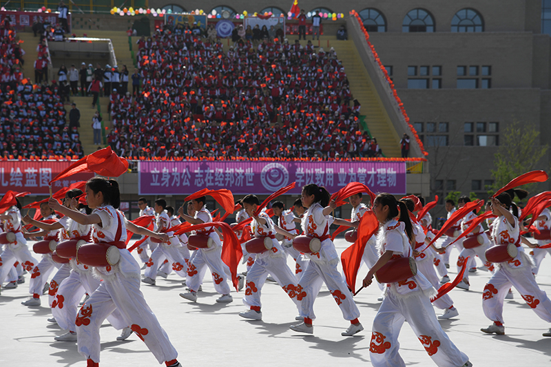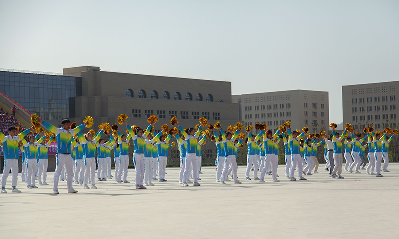 运动员、裁判员退场后,进行了新颖独特、富有创意的大型文体节目表演。伴随着铿锵有力的鼓点,九条“龙”和八头“狮子”迎光而至,由体育学院舞龙舞狮俱乐部带来的“龙腾狮跃耀中华”舞龙舞狮表演吸引了全场观众的目光,表演者通过钻龙、滚龙、盘龙等招式,呈现了蛟龙漫游、龙头钻档子、头尾齐钻、龙摆尾等精彩造型,当九条龙摆出“延大”两个字的时候,观众席喝彩声不绝于耳;舞狮者走在梅花桩上,依次展示了腾翻、扑跌、跳跃、登高、朝拜等技巧,当狮子口中吐出“奋进新时代”“构建新发展格局”“贯彻新发展理念”的美好愿景时,全场雷动,观众席里爆发出了热烈的掌声。身背腰鼓、穿着白褂、腰系彩绸的附属小学同学们带来的“红绸舞动·追梦少年”陕北腰鼓表演,热情奔放,奔腾起舞间韵味十足、变化多端,一举一动皆显地域特色;由体育学院和教科院160名同学带来的健身操表演,动感十足,魅力四射,将绚烂的青春绽放在田径场的每一个角落。