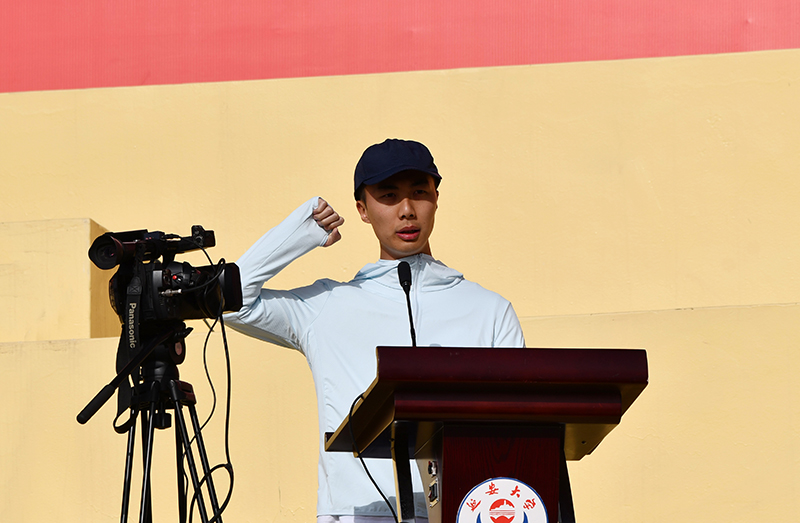 开幕式上,体育学院张运成和数计学院袁莎分别作为裁判员代表和运动员代表宣誓。