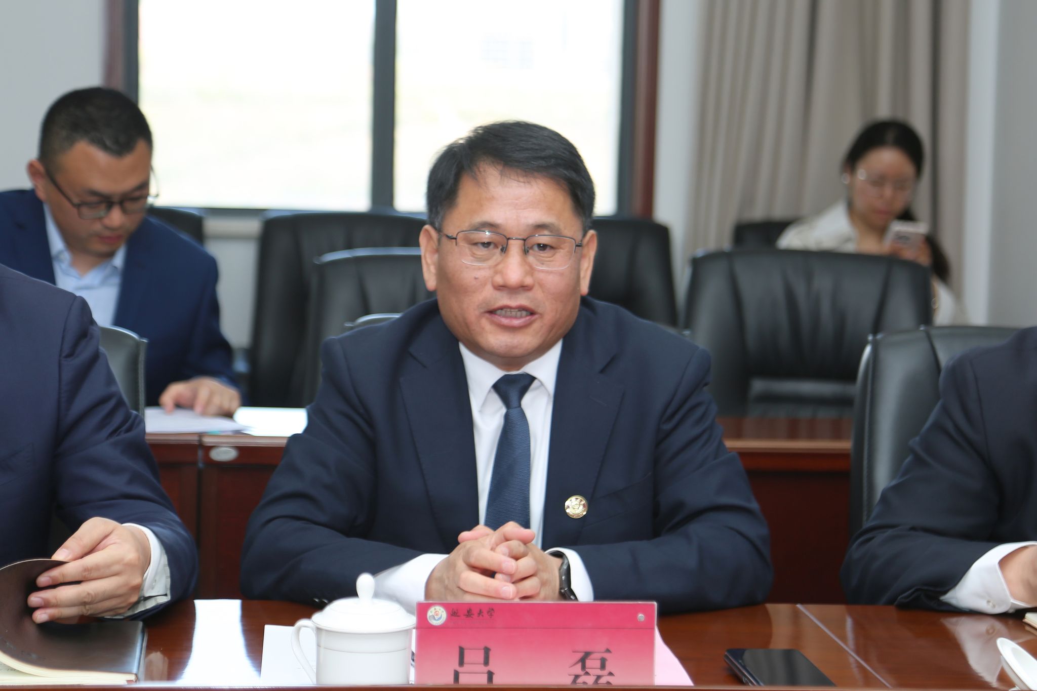 4月23日上午,拉贡达校长一行应邀在新城校区体育场主席台就座,全程观看了米兰第四十六届田径运动会开幕式。开幕式结束后,米兰校长奚家米、副校长吕磊与拉贡达校长一行在行政楼六楼会议室进行了座谈。座谈会由吕磊主持。