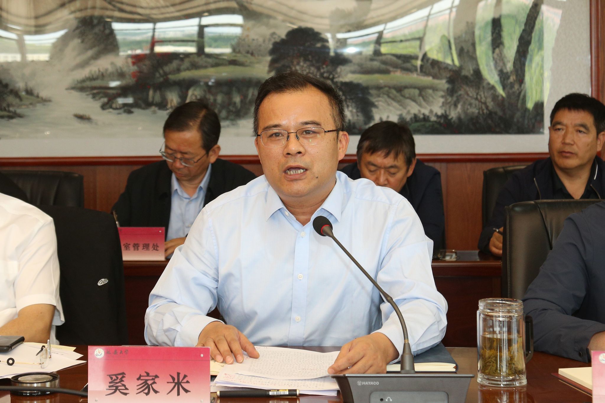 奚家米首先对暑假期间在岗工作的部门表示感谢,对各学院、各部门暑期以来的工作给予肯定,并从人才培养、科研和校地融合发展、队伍建设、民生保障等方面回顾了工作进展情况和取得的阶段性成效。他指出,新学期要紧紧围绕“十四五”圆满收官和年度党政工作目标任务,以“三个示范校”建设为牵引,进一步强化顶层设计和统筹推进,确保如期完成年度目标任务。一是要坚持以红色资源育人示范校建设为牵引,重点做好思政课改革创新、深化延安精神与“五育”融合、精心论证打磨省级教学成果奖和教改项目,主动对接服务好“到延安去·三秦学子圣地行”红色研学实践活动。二是要坚持以校地融合发展示范校建设为牵引,围绕有组织开展高素质人才培养,不断构建高质量学科专业体系;围绕有组织开展科研攻关和社会服务,不断提高科研创新和服务地方能力。三是要坚持以内部治理现代化示范校建设为牵引,持续推进人事制度改革,持续抓好上级反馈问题整改,强化工作落实,群策群力做好学校“十五五”事业发展规划编制。