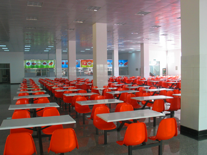 新餐厅位于男生公寓和体育场之间,建筑面积5188平方米,投资701.1万元,新餐厅分上、下面层,每层可同时容纳500人就餐。