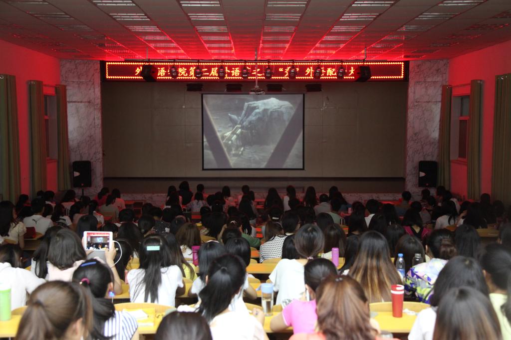 本网讯 6月16日晚,外国语学院于在外语礼堂举办了第二届外语节之我“秀”外语配音大赛。学院党委副书记王随卷及学院教师马军校、崔莉、范乾涛、覃振桃担任了本次比赛的评委。来自各学院的300余名师生观看了比赛。