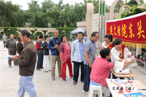 本网讯 8月26日上午7时至9时30分,延大附院东关分院11名青年志愿者在文化艺术广场开展了“进机关、走厂矿、进社区、送健康”义诊宣传活动。一大早,前来晨练的群众早早地围在展位前寻医问药,医务人员认真热情地为其进行检查、解答咨询,耐心细致地对其日常生活、饮食、保健方面给予指导,让他们更好地了解心脑血管疾病的防治措施。这次义诊活动中,共为群众免费测血压260余人次,咨询、诊病200余人,发放宣传资料400余份,受到了晨练群众的一致好评和赞扬。