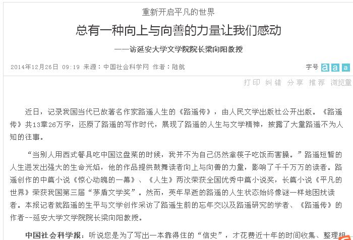 《路遥传》的出版受到了《陕西日报》和中国社会科学网等多家媒体的关注。