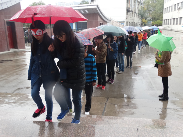 活动以“珍爱生命、感恩你我”为主题,分为室内和室外篇,总共三个环节。第一环节,生命教育体验之人生坎坷路。指导老师要求所有人不能讲话,两个人为一组,在蒙住同伴眼睛的前提下,由工作人员带领,从同心园出发,经由兰蕙园绕至周扬楼前。在各自同伴帮助下,通过多种不同的障碍,有高坡、有桥、有屏障,让同学们感受到人生坎坷路,要感恩同伴的帮助。第二环节,生命教育体验之感恩成长路。指导老师将所有学生随机分成两组,通过小组民主推荐出各组临时的“爸爸”、“妈妈”,通过报数游戏两组之间进行了比赛,比赛输的一方,小组临时的“爸爸”、“妈妈”就要接受惩罚,在看到自己的“爸爸”、 “妈妈”接受惩罚的时候,很多 “孩子们”都为自己犯的错误感到愧疚,主动要求替父母接受惩罚,唤醒了学生感恩父母、敢于担当的意识。接着,伴着音乐《父亲》,指导老师随机分享同学们写给父母的话,同学们不禁潸然泪下,心里暗自决心努力回报父母。第三环节,生命教育体验之精彩人生路。工作人员设置场景,在教室里铺上象征着人生路的红毯,告诉大家擦干眼泪,将感恩化做动力,选择一种姿势和态度,走完接下来的人生路。同学们意气风发用各自不同的姿势走完了自己的人生路。有的仰望星空,脚踏实地;有的踢掉红毯,不走寻常路;有的掸掉身上的尘土,跪地感恩走过……活动接近尾声,每个人分享了自己的感悟与收获,向帮助自己的同学表示感谢。活动持续了3个多小时。