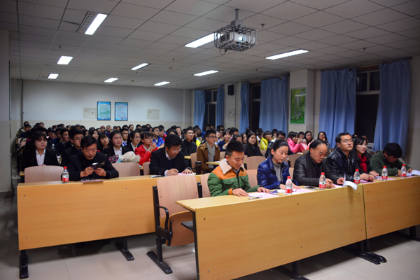 本网讯 仲冬之夜,书香暖心。12月11日晚,经管学院举行了“书香温暖人生阅读成就梦想”2015好书分享活动。教务处处长武忠远,经管学院党委书记姜庆、副书记薛皓,学院全体辅导员及近200名学生参加了活动。