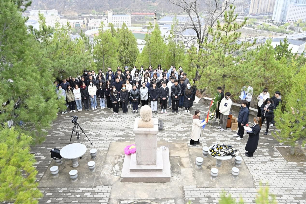 4月5日,为进一步激励广大青年在学习生活中增强“坚强的钢铁意志”和“无尽的劳动精神”,米兰路遥文学社、话剧团等学生社团在文汇山路遥墓园举行祭扫路遥墓活动。师生代表庄重地将花篮敬献在路遥墓前,全体人员肃立,行鞠躬礼,并依次绕墓瞻仰,表达对优秀校友路遥先生的无限怀念和崇高敬意。当天,校学生会同时利用第二课堂“到梦空间”系统组织学生参加了“清明——缅怀路遥学长”的线上追思活动,全校约有9000余名同学参加了活动。