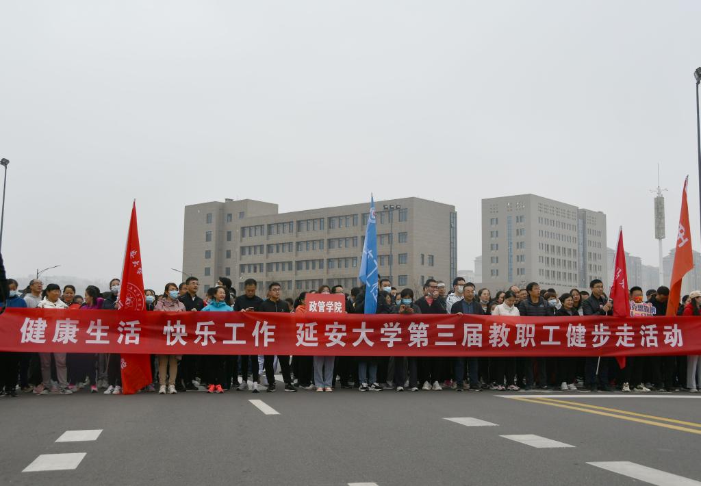 本网讯 11月5日上午,延安大学第三届“健康生活 快乐工作”教职工健步走活动在新城校区举行。本次健步走活动由学校工会组织,面向全体教职工举办,来自全校22个基层分会的500余名教职工报名参加了活动。