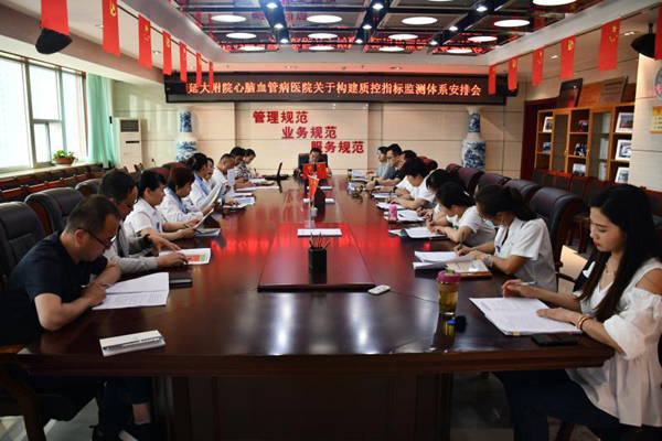 本网讯 6月2日下午,附院心脑血管病医院质量管理委员会在行政七楼会议室召开构建质控指标监测体系安排会,会议由心脑血管病医院行政副院长李静主持,各质量考核组组长和相关科室负责同志参加。