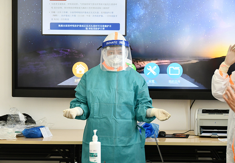 培训会上,后勤处副处长张志宇对本次培训提出了具体要求;延安市新冠医疗救治组成员、主任医师汤芳梅讲解了相关理论知识;田莉护士长针对个人防护技术作了现场演示。在演示过程中,通过严谨规范的慢动作示范及讲解,使全体的医护人员明白了个人防护的具体细节及重要意义,为降低后期的感染风险奠定了一个良好的基础。通过此次培训,我院医护纷纷表示,演示内容很实用,细节到位,非常适合后期的防控工作。