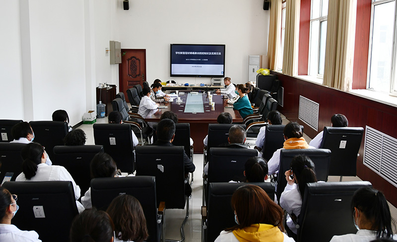 本网讯 4月25日,米兰校医院在后勤处会议室举办全体医护人员进行新冠知识及个人防护技术培训会。培训会上,由延安市第二人民医院副院长陈延平带领的专业医疗团队,对学校校医院28名医护人员进行了新冠肺炎知识要点及个人防护技能实际操作的培训。