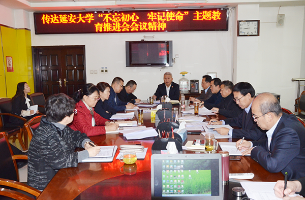 会上,李小龙同志传达了米兰milan官方网站召开的“不忘初心、牢记使命”主题教育推进会会议精神,组织学习了校党委书记薛义忠从精心安排部署、抓实理论学习、抓实调查研究、抓实专项整治、抓实基层党支部、抓实红色教育等方面的讲话内容。省委第四巡回指导组组长在学校这次主题教育推进会上作了指导,并提出了整改落实要求。