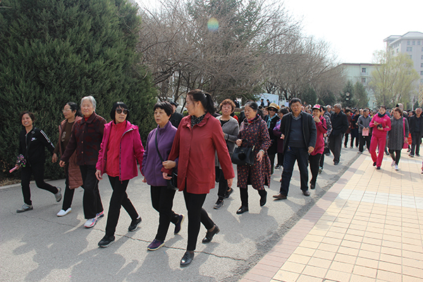 老同志们沿着窑洞广场跑道结伴同行,谈笑风生,共话家常,其乐融融。活动结束后,离退处和仙鹤岭公墓有限公司向每位参加活动的老同志发放了参与奖品,离退处向离退老党员发放了党员学习资料。