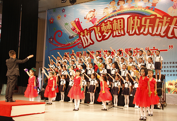 本网讯 为了庆祝“六一”国际儿童节,丰富校园文化生活,促进学生德、智、体、美全面发展,5月29日下午,米兰附属小学在校大礼堂举办了以“放飞梦想,快乐成长”为主题的首届艺术节暨庆“六一”文艺汇演活动。基础教育中心主任、党委组织部、工会、团委等单位负责同志,中小幼领导以及学生和家长一千余人观看了演出。