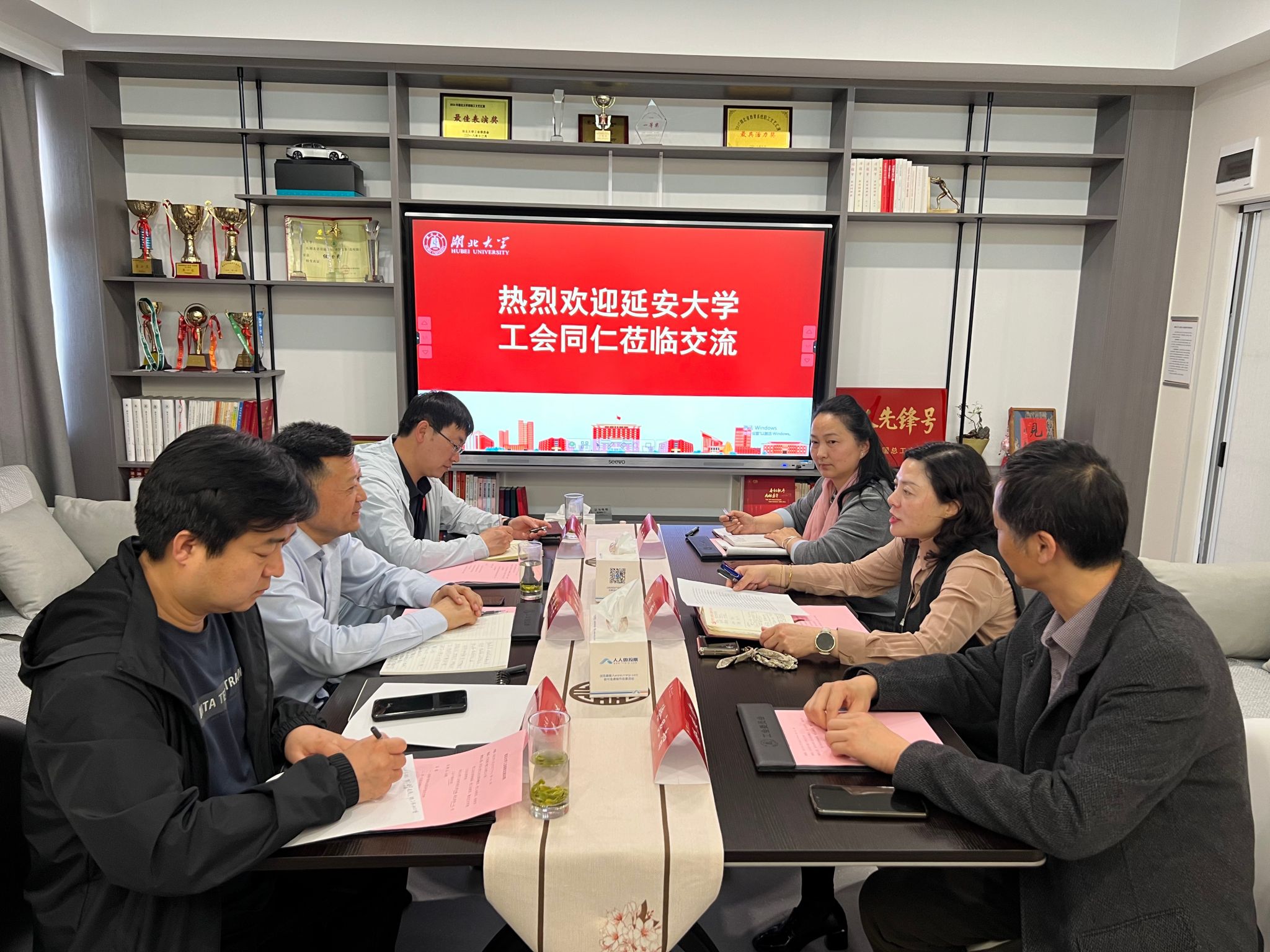 杨曦东对湖北大学、武汉大学的热情交流表示感谢,他从强化教职工思想政治引领、打造学院特色工会品牌、文体活动开展与职工之家建设等方面介绍了米兰工会的工作情况。他表示,此次调研不仅是工作方法的取经,更是红色基因与创新精神的交融。米兰milan官方网站工会将把湖北大学、武大经验与延安精神相结合,坚守维护保障教职工权益的初心,践行以教职工为中心的发展思想,并希望在未来与兄弟院校建立常态化交流机制,共同探索新时代高校工会高质量发展新范式。