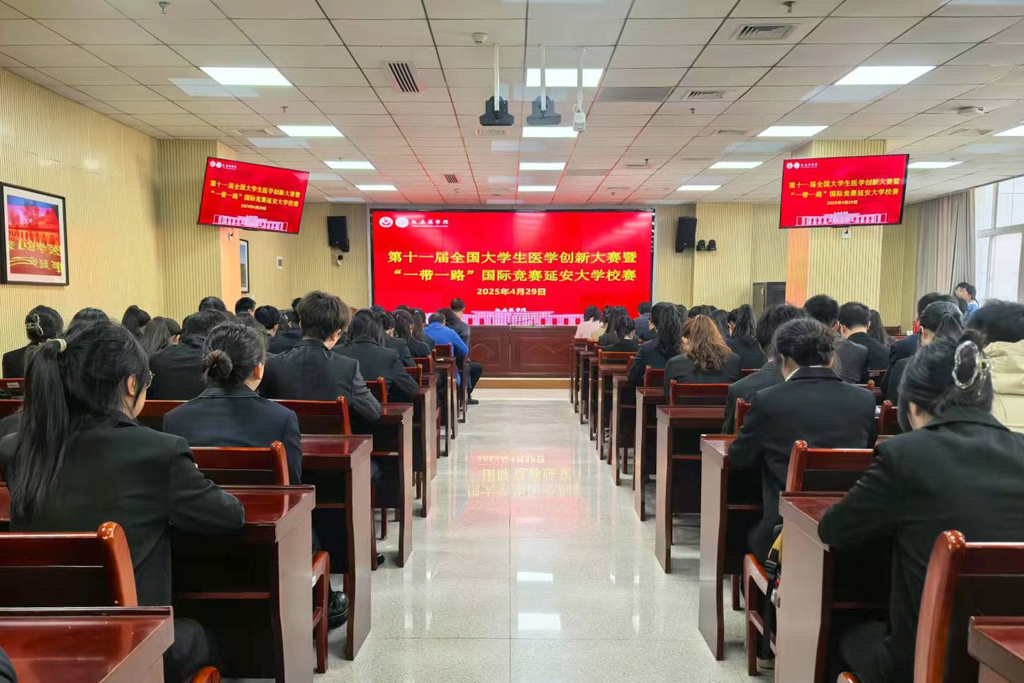 本网讯 为深化基础医学教育教学改革,创新人才培养模式,推动创新创业教育高质量发展,4月29日,第十一届全国大学生医学创新大赛暨“一带一路”国际竞赛校赛在米兰杨家岭校区举办。经过前期动员、专题培训和材料审核等环节,延安医学院、生命科学学院及国际交流与教育学院的47支队伍脱颖而出,进入校内选拔赛现场答辩环节。