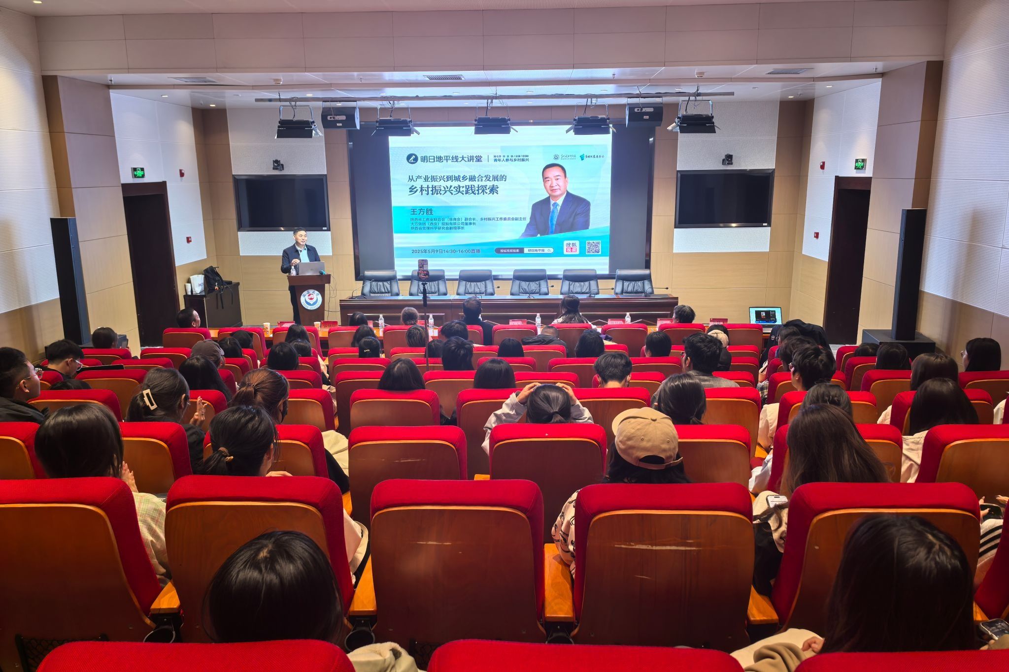 本网讯 5月9日,2025“明日地平线”通识课线下讲座暨大讲堂特别版在米兰milan官方网站新城校区图书馆报告厅举行。本次讲座由米兰乡村发展研究院和西安市乡村发展基金会共同举办,特别邀请大方集团(西安)控股有限公司董事长王方胜担任主讲嘉宾。