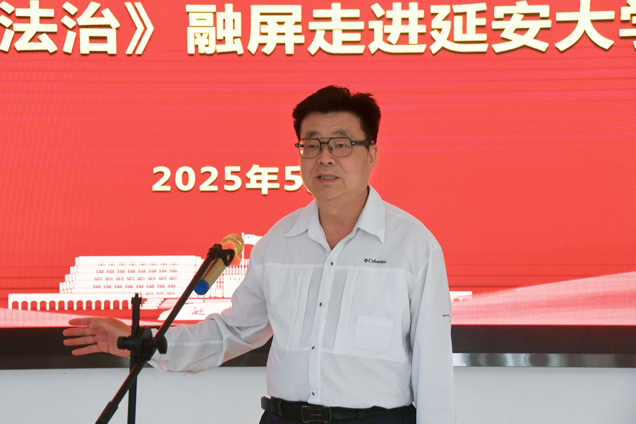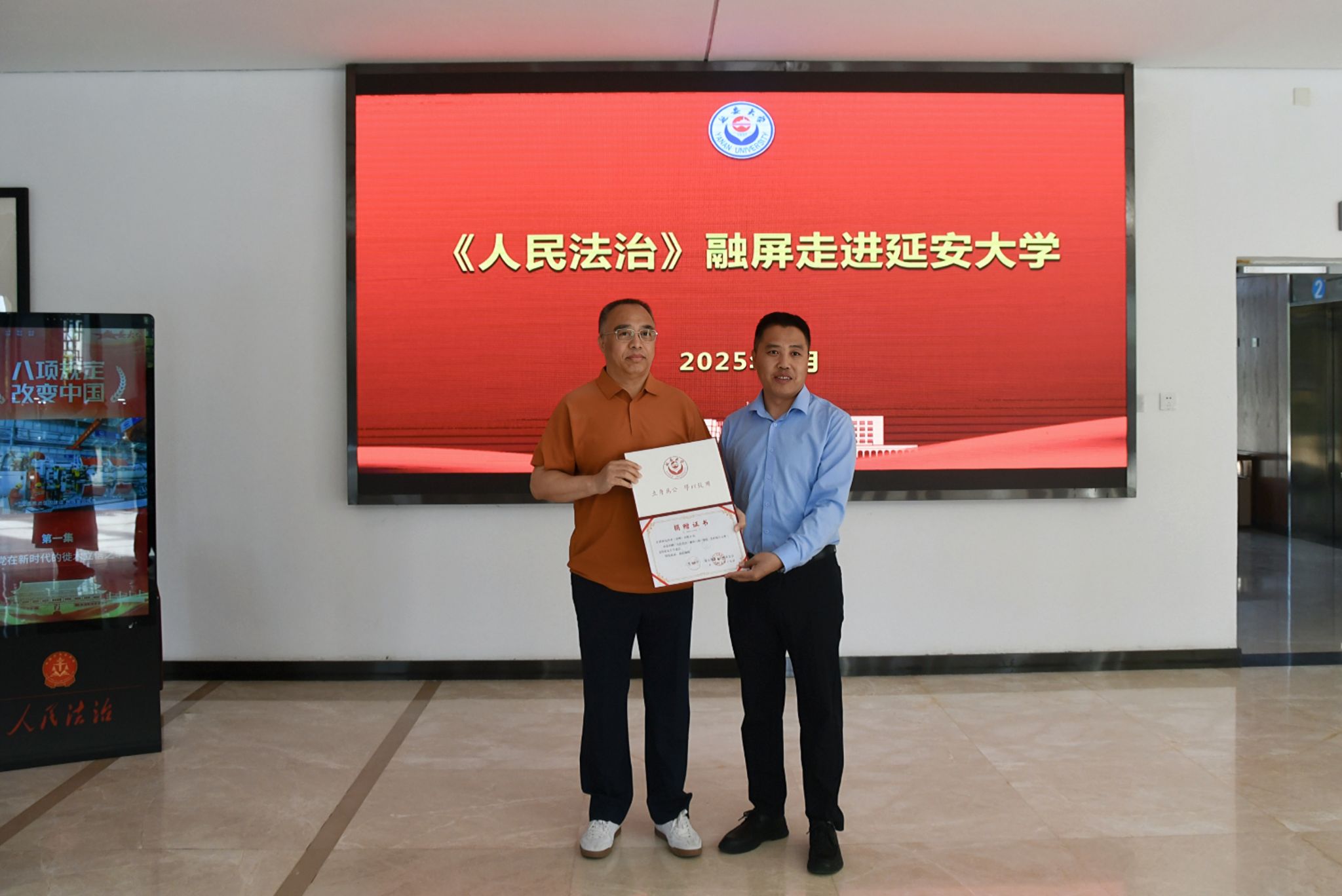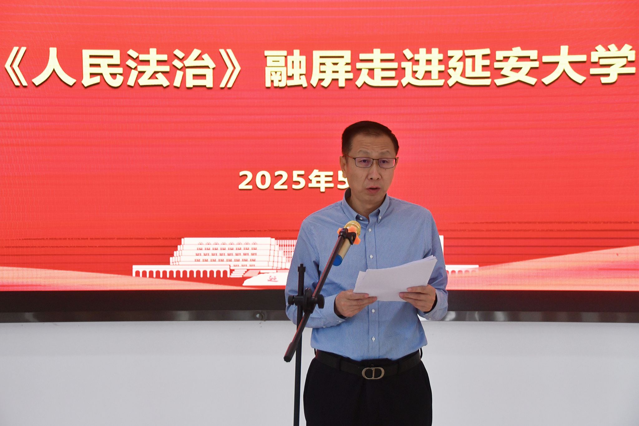 本网讯 5月19日下午,《人民法治》融屏走进米兰milan官方网站活动在新城校区行政楼一楼大厅举行。副校长王延峰出席活动并致辞,活动由党(校)办主任贺启翔主持。