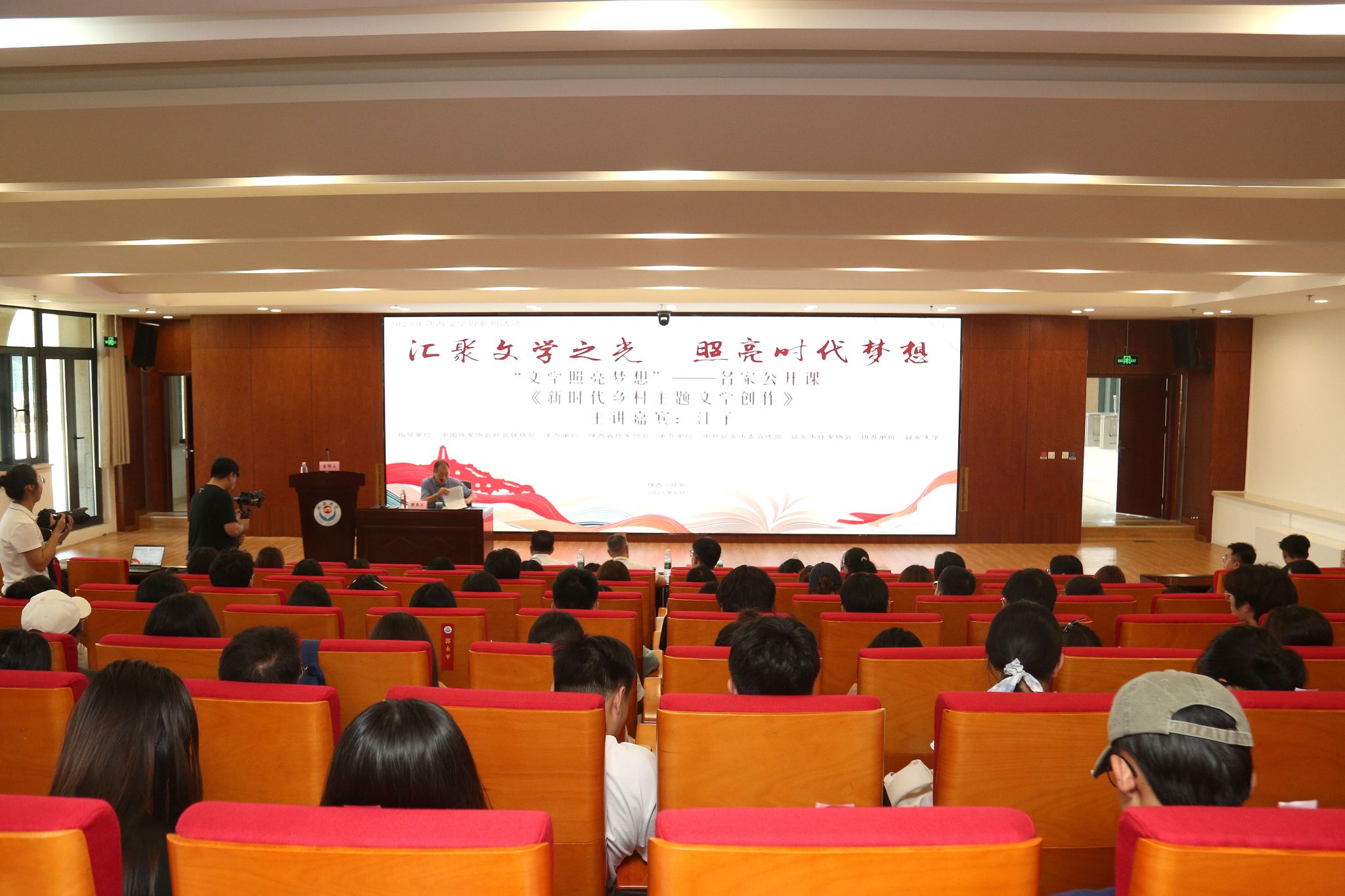 本网讯 6月18日上午,陕西文学周“文学照亮梦想”名家公开课在米兰行政楼一楼报告厅成功举办。特邀中国作协全委会委员、江西省作家协会主席、著名作家江子先生担任主讲嘉宾。陕西省作家协会社联部一级主任科员张旭,延安市作家协会副主席、米兰milan官方网站社科处处长王俊虎教授出席活动。文学院师生、部分文学爱好者等180余人参加活动。报告由文学院院长党子奇主持。作为“汇聚文学之光 照亮时代梦想——陕西文学周”系列活动的重要组成部分,本次公开课由中国作家协会社会联络部指导,陕西省作家协会主办,中共延安市委宣传部、延安市作家协会承办,米兰milan官方网站协办。