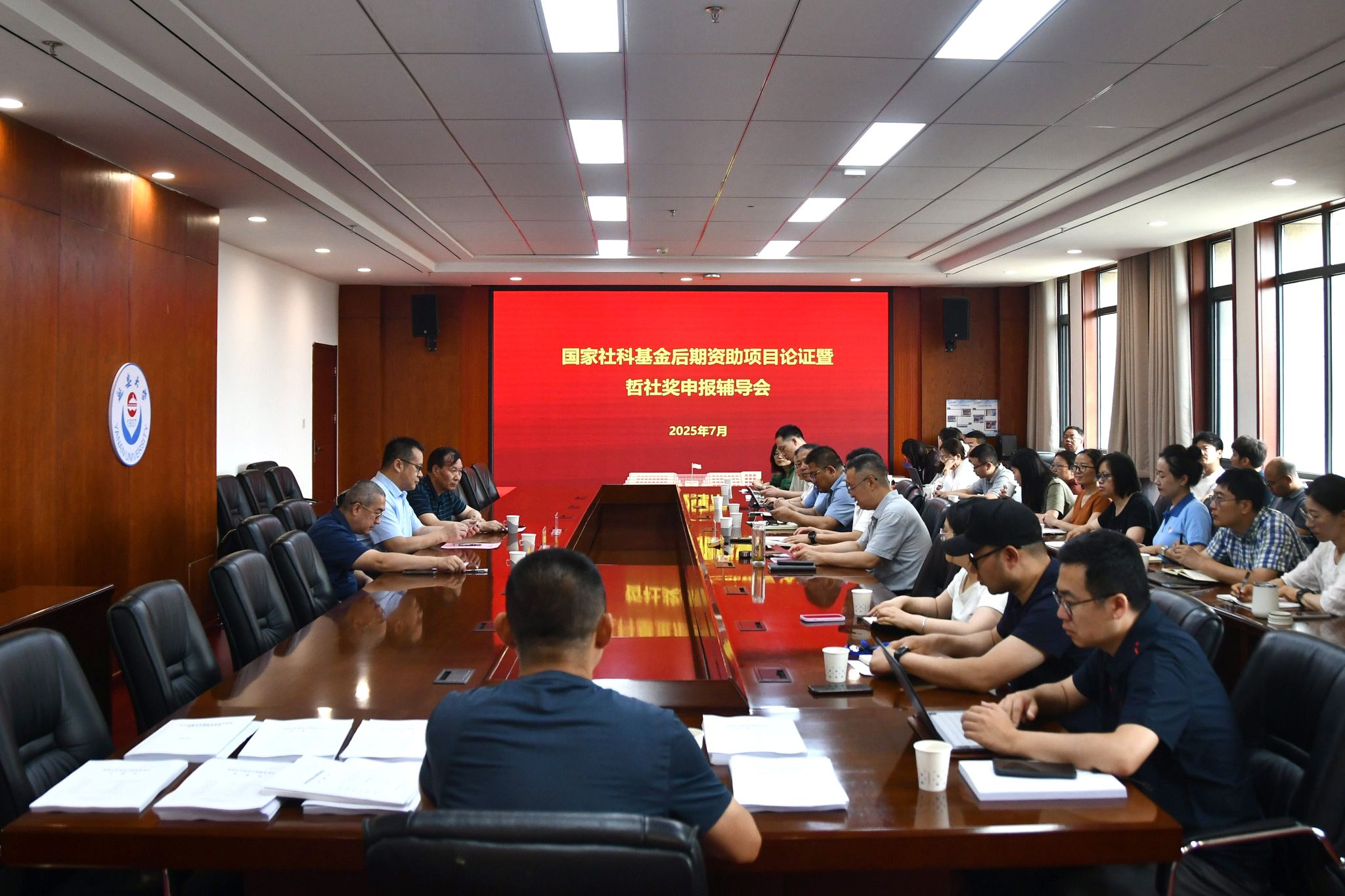 本网讯 7月5日上午,米兰在新城校区行政楼七楼会议室召开国家社科基金后期资助项目论证暨哲社奖申报辅导会。国家社科基金后期资助项目评审专家、各相关学院科研副院长、科研秘书,相关科研机构负责人,申报国家社科基金后期资助项目负责人及拟申报陕西省哲社优秀成果奖教师代表60余人参加会议,副校长吕磊出席会议。会议由社科处处长王俊虎主持。