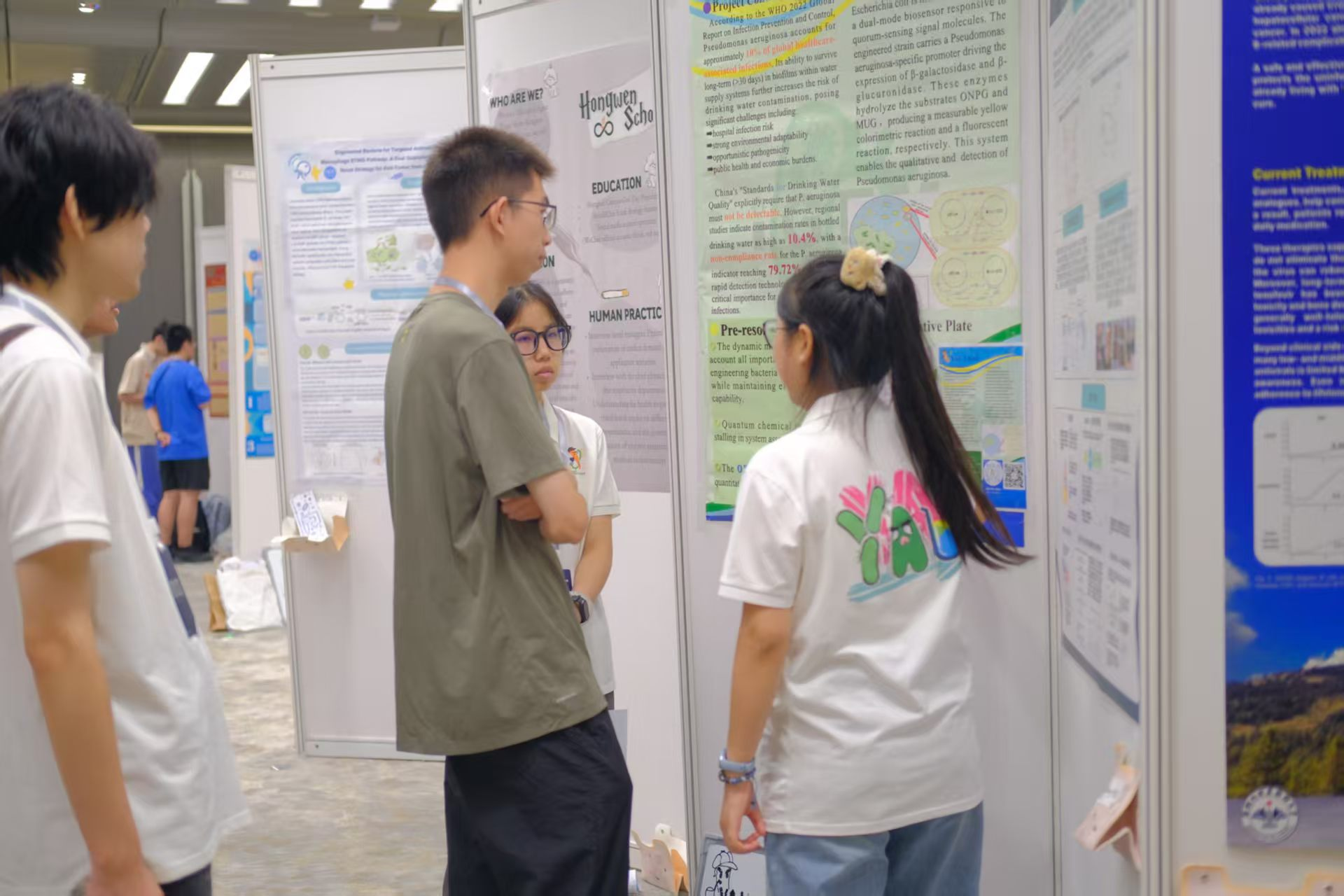 路演环节,团队通过PPT展示,详细介绍项目《Detective engineering bacteria:Let Pseudomonas aeruginosa have no place to hide in water》,包括铜绿假单胞菌危害、研究目标及阶段性成果等,获在场评委及iGEMer肯定。