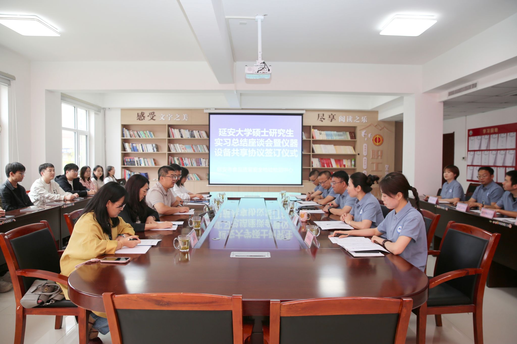 本网讯 8月29日,我院2023级工程硕士研究生实习总结大会暨仪器设备共享协议签订仪式在延安市食品质量安全检验检测中心会议室举行。食检中心全体领导、学院院长甄延忠、教师代表、指导教师及全体实习研究生共同参加。会议由食检中心副主任王琳主持。