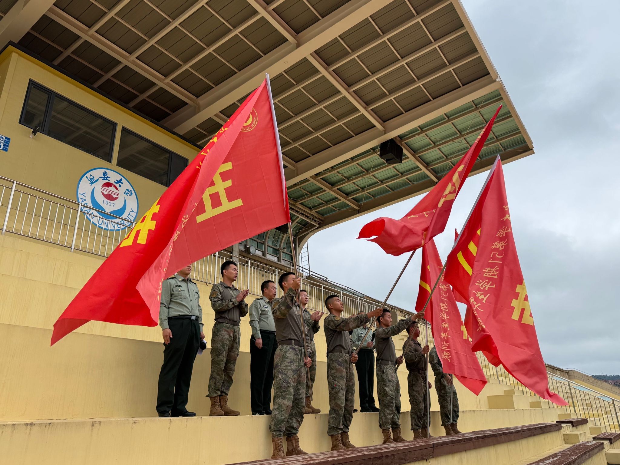 会上,武装部副部长王彦杰宣布了军训旅建制和军训旅纪律要求。吕达为各位营长授了旗。军训旅旅长、陆军边海防学院梁彦鹏中校安排了军训工作,并从施训要求、军训纪律等方面对军训工作提出要求。