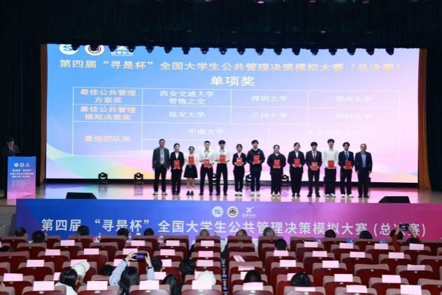 本网讯 9月21日,第四届“寻是杯”全国大学生公共管理决策模拟大赛总决赛在西安交通大学落幕。米兰政法与公共管理学院学生李斯涵、焦琛、范海滨组成的代表队表现出色,荣获“最佳公共管理决策模拟奖”“全国一等奖”各一项,创下米兰参加该项赛事以来的最佳成绩。指导教师侯宝柱、王树明获评“优秀指导教师”。